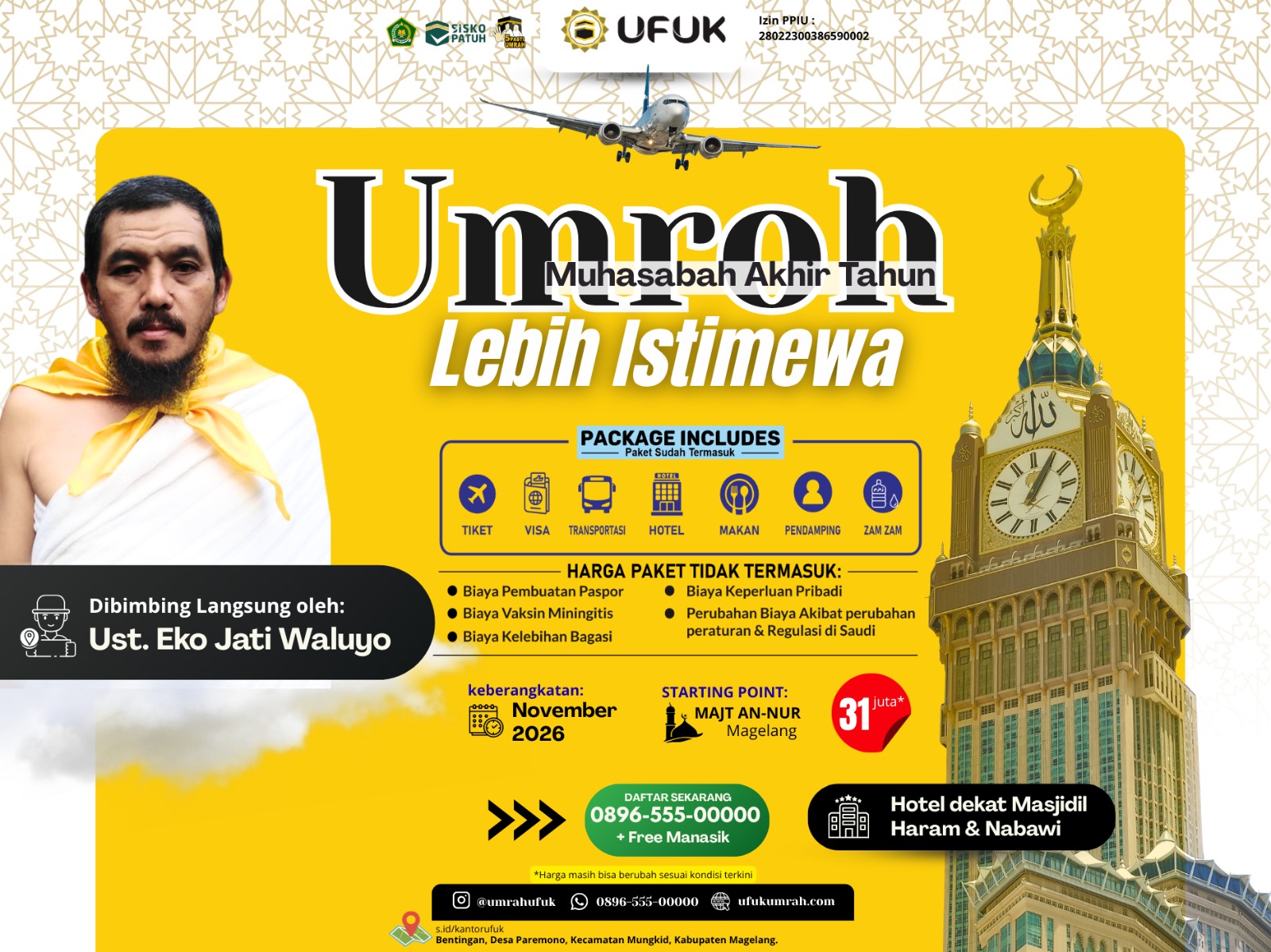 ⚠️ Belum termasuk: paspor, vaksin meningitis, kelebihan bagasi, dan kebutuhan pribadi.